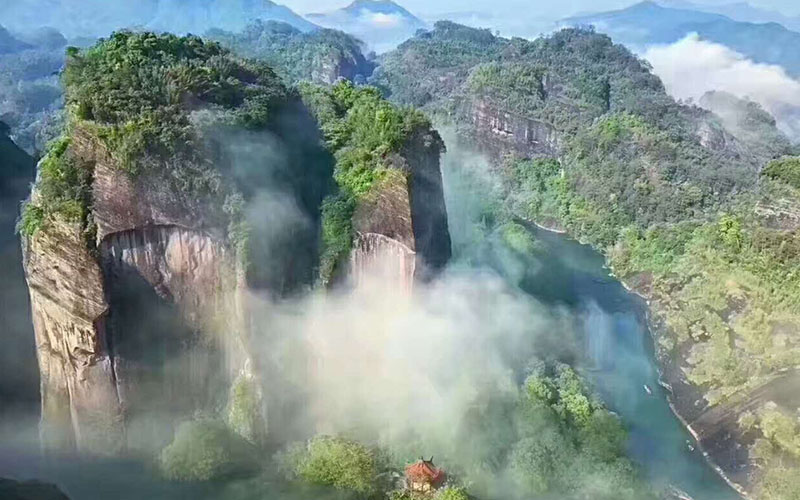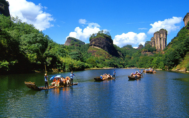 【世界文化與自然雙遺產(chǎn)——武夷山】 位于武夷山市南郊,素有“碧水丹山”、“奇秀甲東南”之美譽(yù),是大武夷旅游圈的核心景區(qū),國(guó)家AAAAA級(jí)旅游景區(qū)。武夷山集道、佛、儒教于一身,是一座歷史悠久的文化名山,秦漢以來,為歷代朝延所推崇,唐朝時(shí)被冊(cè)封為天下名山大川;是全球生物多樣性保護(hù)的關(guān)鍵地區(qū),是尚存的珍稀、瀕危物種的棲息地,有“動(dòng)物樂園”、“昆蟲世界”、“鳥的天堂”、“世界生物之窗”“天然植物園”等美稱。九曲溪、天游峰、玉女峰、大王峰……“三三秀水清如玉,六六奇峰翠插天”,構(gòu)成了奇幻百出的武夷山水之勝。