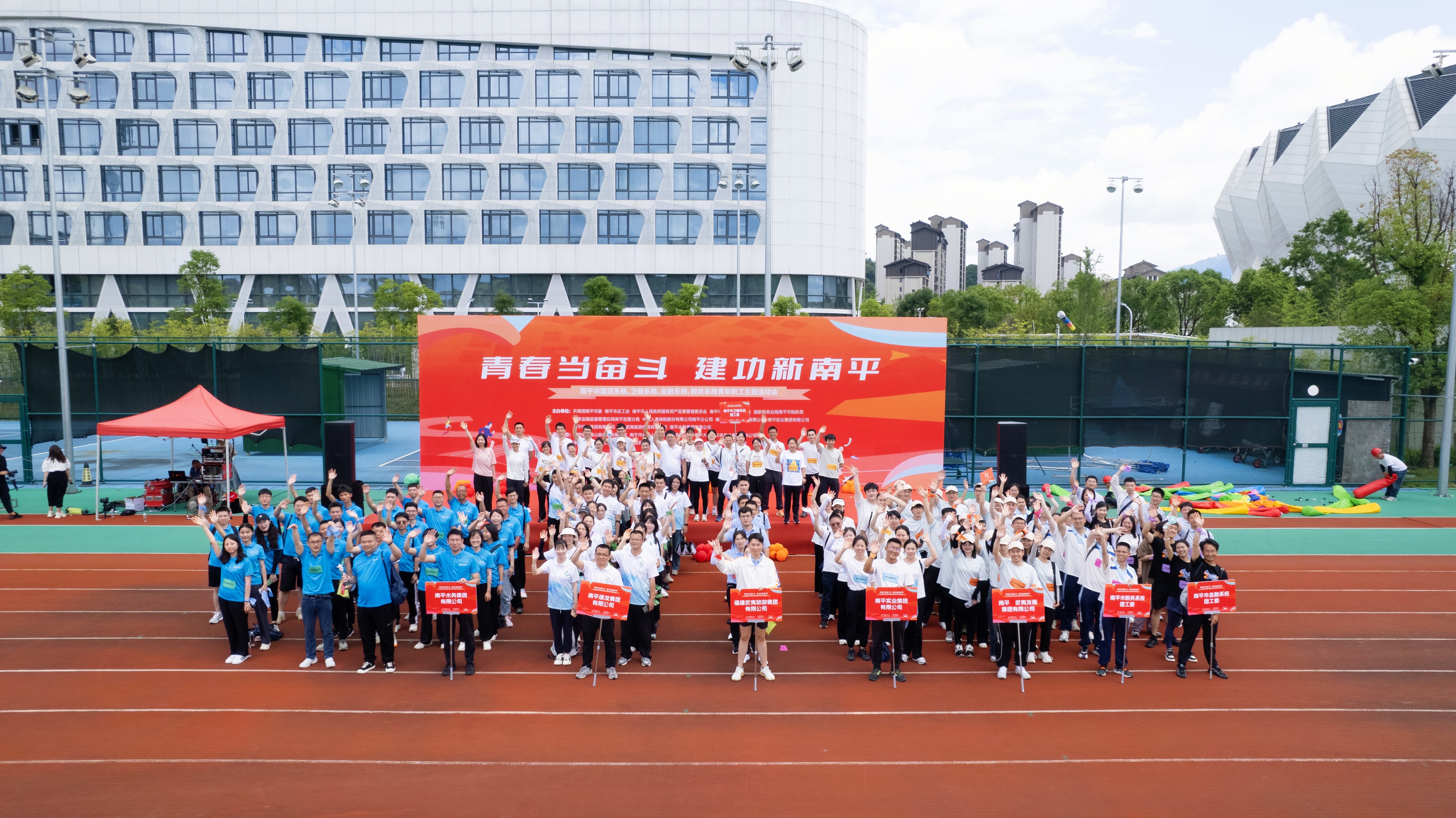 5月28日,由團(tuán)市委、市總工會(huì)、市國(guó)資委、市衛(wèi)健委、市稅務(wù)局、國(guó)家金融監(jiān)督管理總局南平監(jiān)管分局、中國(guó)人壽南平分公司、武夷發(fā)展集團(tuán)、南平實(shí)業(yè)集團(tuán)、綠發(fā)集團(tuán)、武夷旅游集團(tuán)、水務(wù)集團(tuán)等單位聯(lián)合主辦的“青春當(dāng)奮斗 建功新南平”南平市國(guó)資系統(tǒng)、衛(wèi)健系統(tǒng)、金融系統(tǒng)、稅務(wù)系統(tǒng)青年職工主題運(yùn)動(dòng)會(huì)在市體育中心成功舉辦,共有8支代表隊(duì)、400余名青年職工參與。