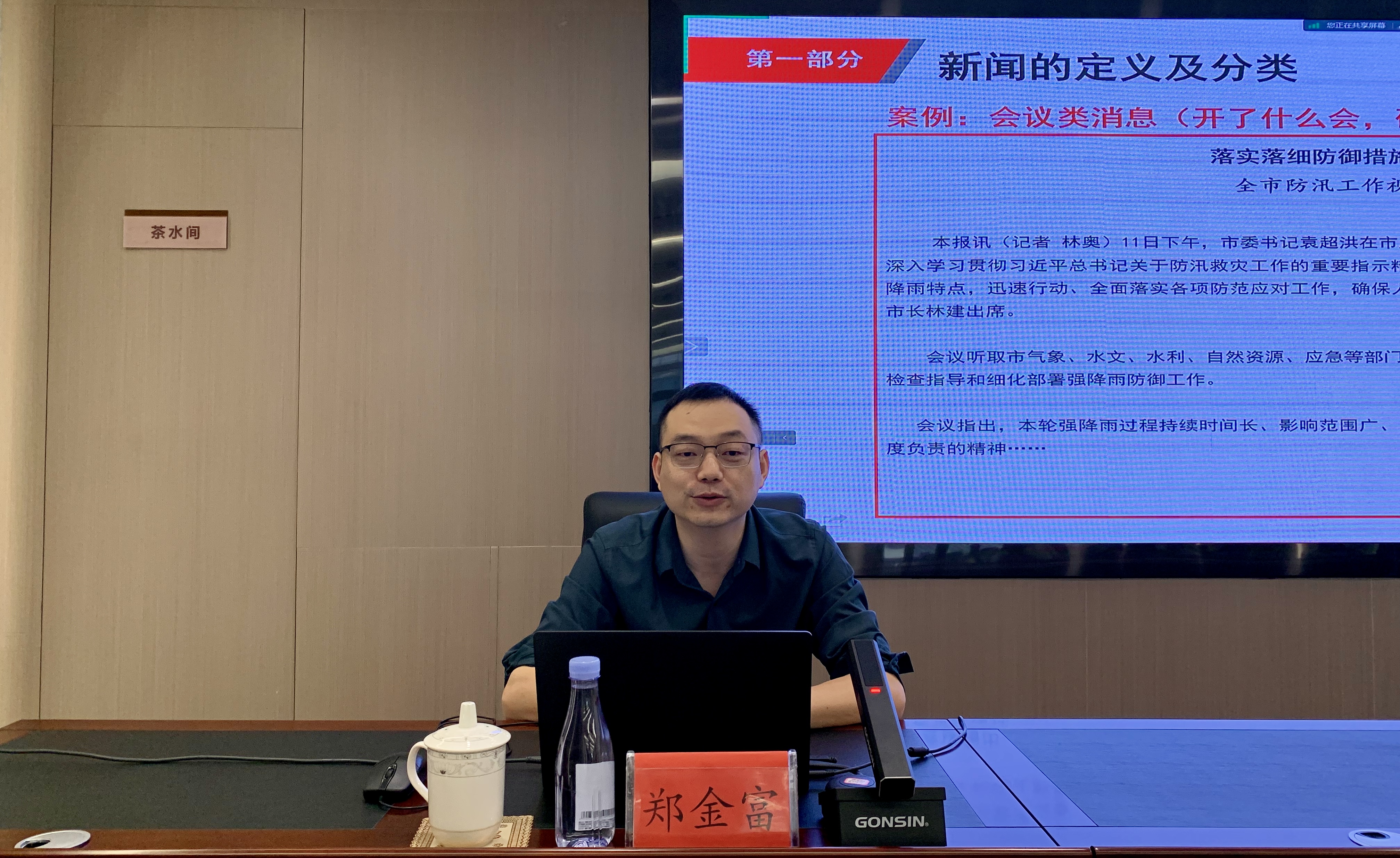 ▲閩北日報(bào)社記者部負(fù)責(zé)人、主任記者鄭金富講授《新聞信息寫作》