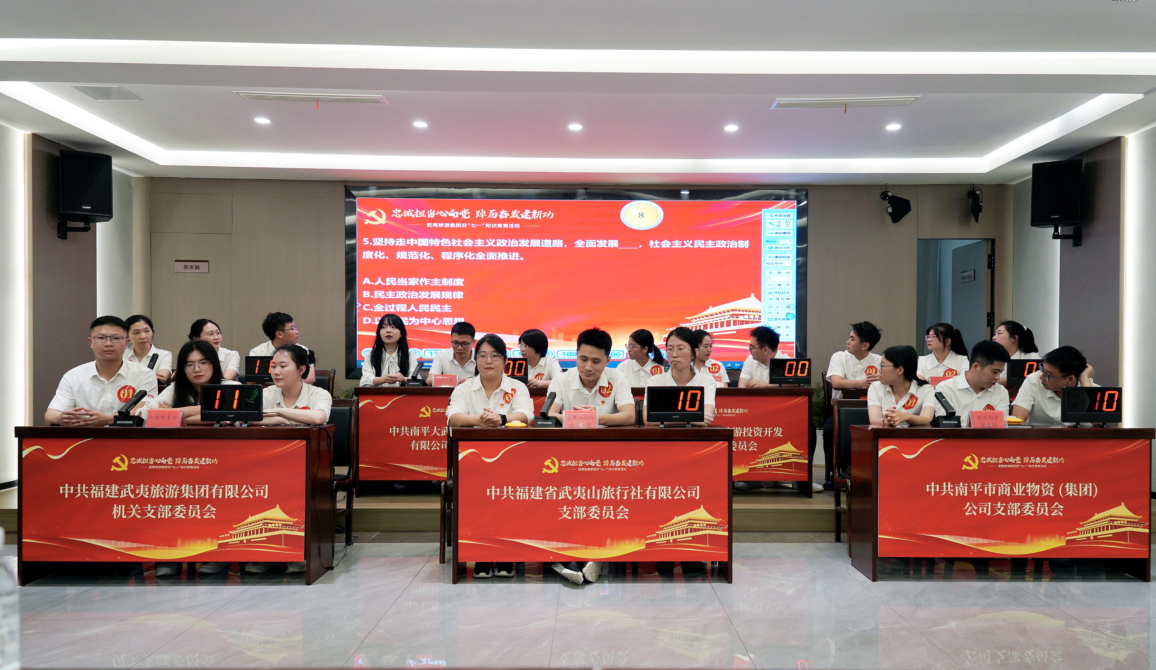 開展一次知識競賽。舉辦迎“七一”知識競賽活動,設(shè)置個人必答、團隊必答、搶答、風險題等環(huán)節(jié),內(nèi)容涵蓋黨章、黨規(guī)、黨紀、黨史等知識,活動現(xiàn)場氣氛熱烈,營造了“以賽促學(xué)、以學(xué)促行、比學(xué)趕超”的良好氛圍。