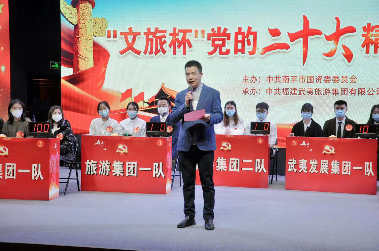 為深入學(xué)習(xí)宣傳貫徹黨的二十大精神,在廣大干部職工中營(yíng)造以賽促學(xué)、以學(xué)促行的濃厚氛圍,12月16日下午由旅游集團(tuán)黨委承辦國(guó)資系統(tǒng)“文旅杯”黨的二十大精神知識(shí)競(jìng)賽在南平市大劇院正式開賽。市國(guó)資委副主任陳昶出席競(jìng)賽并致辭,本次競(jìng)賽邀請(qǐng)市國(guó)資委黨辦有關(guān)人員擔(dān)任評(píng)委,來自市屬國(guó)企8支代表隊(duì)共24名隊(duì)員同臺(tái)競(jìng)技。